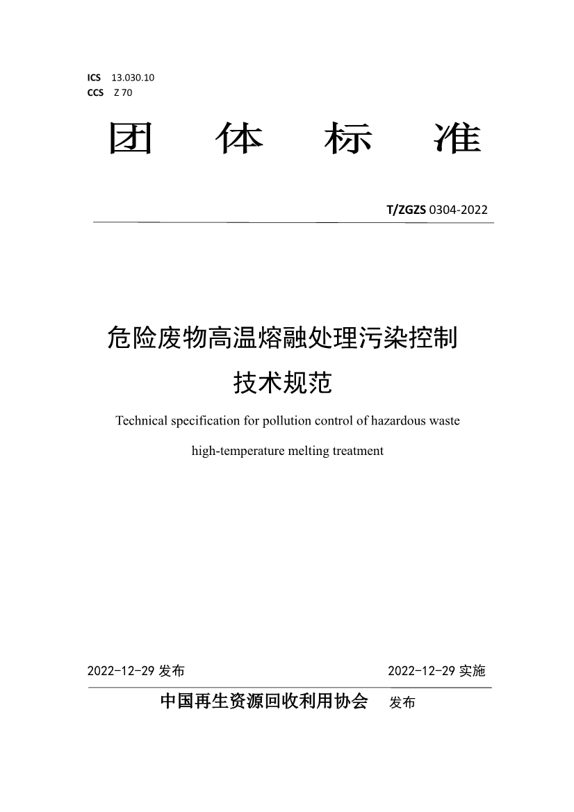 中國(guó)再生資源回收利用協(xié)會(huì)發(fā)布團(tuán)體標(biāo)準(zhǔn)《危險(xiǎn)廢物高溫熔融處理污染控制技術(shù)規(guī)范》,自發(fā)布之日起實(shí)施。詳情如下: