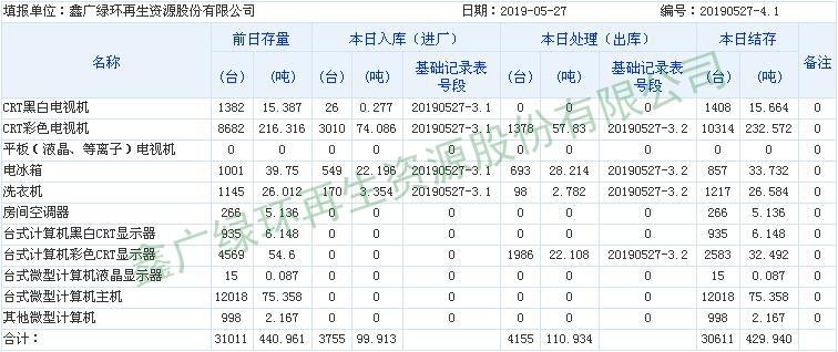 2019.05.27回收拆解統(tǒng)計(jì)表