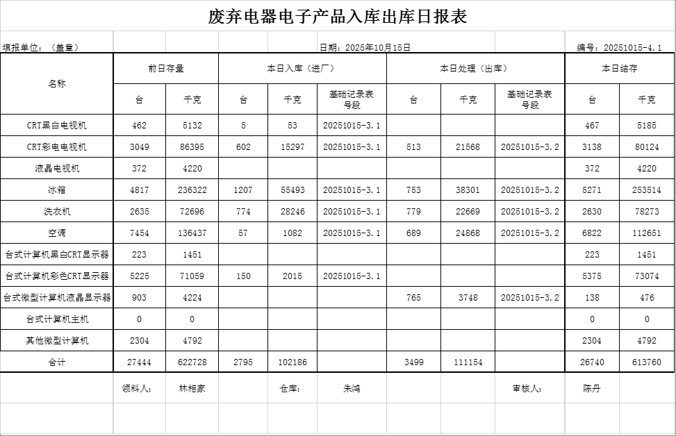 2025.10.15回收拆解統(tǒng)計(jì)表