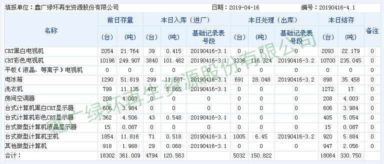 2019.04.16 回收拆解統(tǒng)計(jì)表